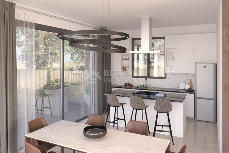 This beautiful property offers a spacious open-plan living area with a fully fitted kitchen, three bedrooms with built-in wardrobes, and three bathrooms plus a guest WC. Set on a large plot, it features generous verandas, a private pool, roof garden, and dedicated parking space. Comfort is ensured with provisions for air conditioning and central heating.