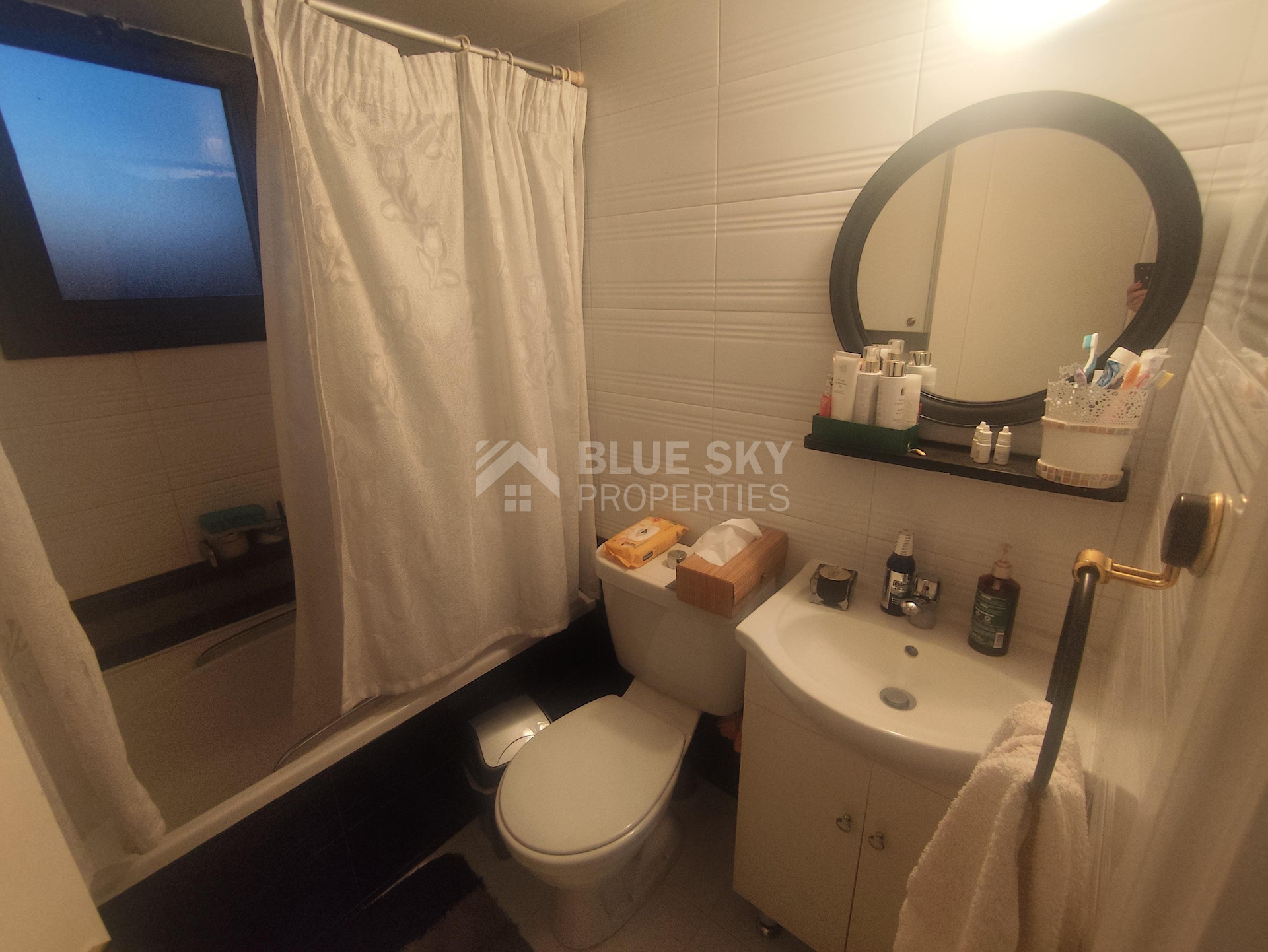 A bright and comfortable 2-bedroom penthouse apartment with panoramic sea views is now available in the popular Agios Tychonas tourist area. The property is located in a quiet residential neighborhood surrounded by well-maintained homes while still offering easy access to beaches, shops, restaurants, and all daily amenities.
