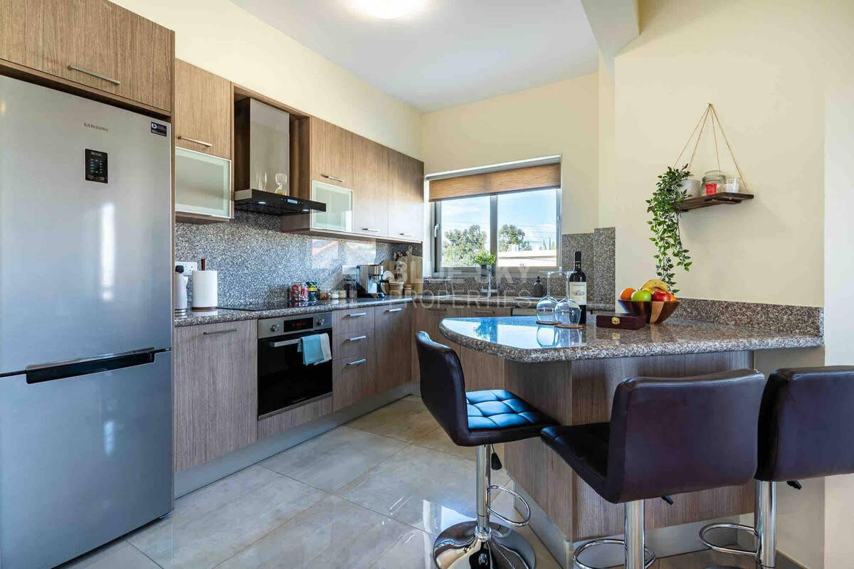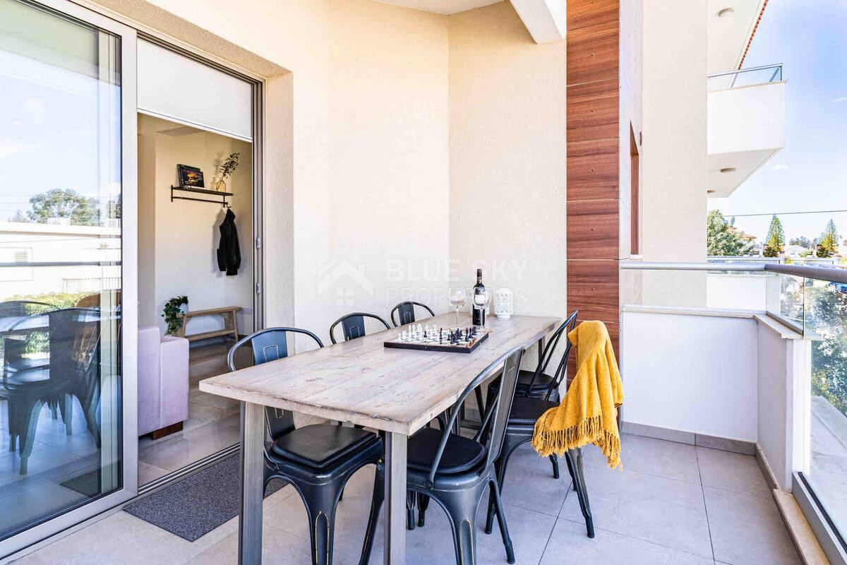 Built in 2018 and first occupied in 2019, the apartment is in very good condition and has been carefully maintained. Its prime location ensures easy access to main roads and the highway via the Troodos roundabout, making commuting effortless. Additionally, it is close to schools, shops, supermarkets, and all essential amenities.