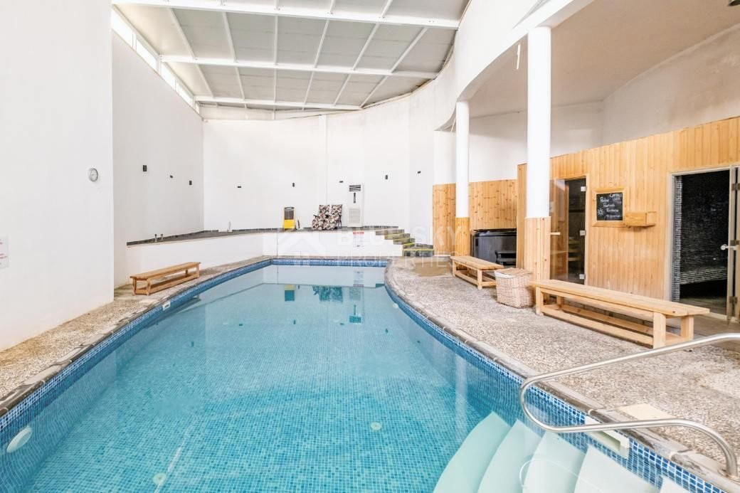 A: Residents have access to an outdoor swimming pool with bar, indoor saltwater pool, and sauna with an indoor pool.