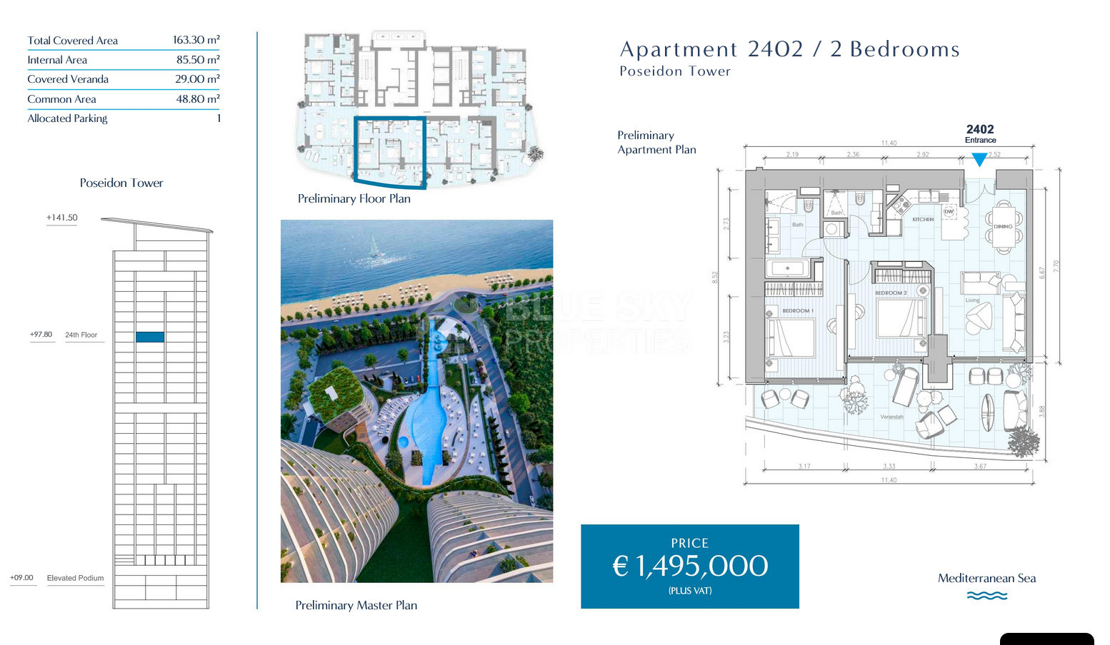 With a total covered area of 222.40 sqm (120 sqm internal, 33 sqm covered veranda, and 69.40 sqm common areas), this residence is designed for both comfort and elegance. A covered parking space is also included, ensuring maximum convenience. It’s one of the last available Limassol luxury properties, making it an exceptional Cyprus real estate investment opportunity.