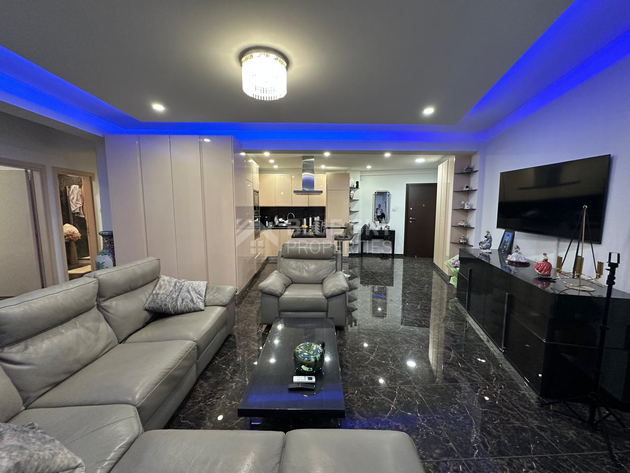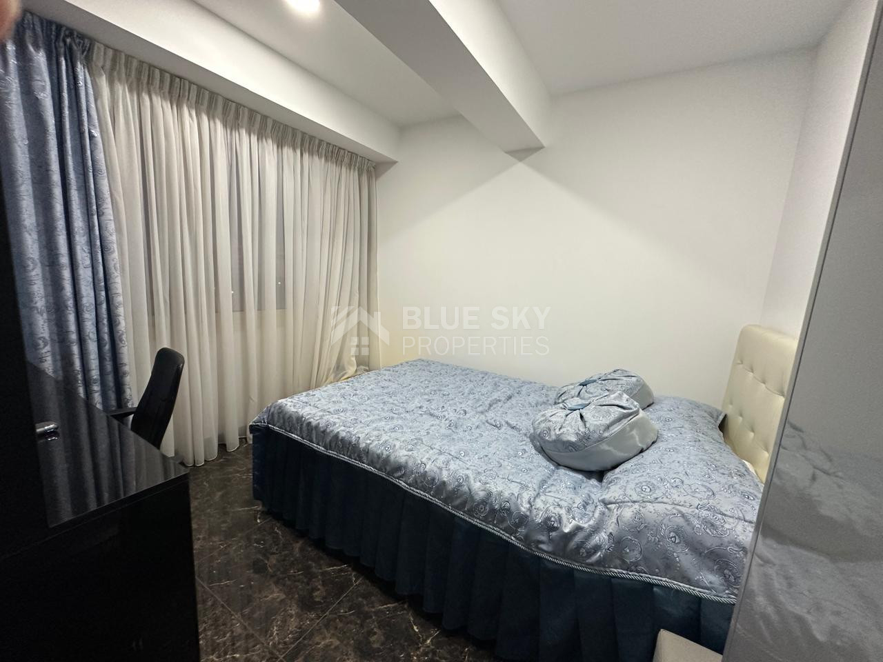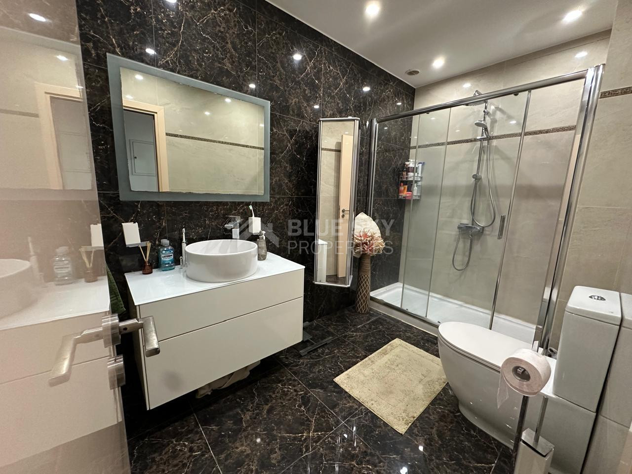 The apartment includes three well-proportioned bedrooms, a modern bathroom with shower. High-quality finishes such as marble flooring, double-glazed windows, and sound insulation enhance comfort and durability.