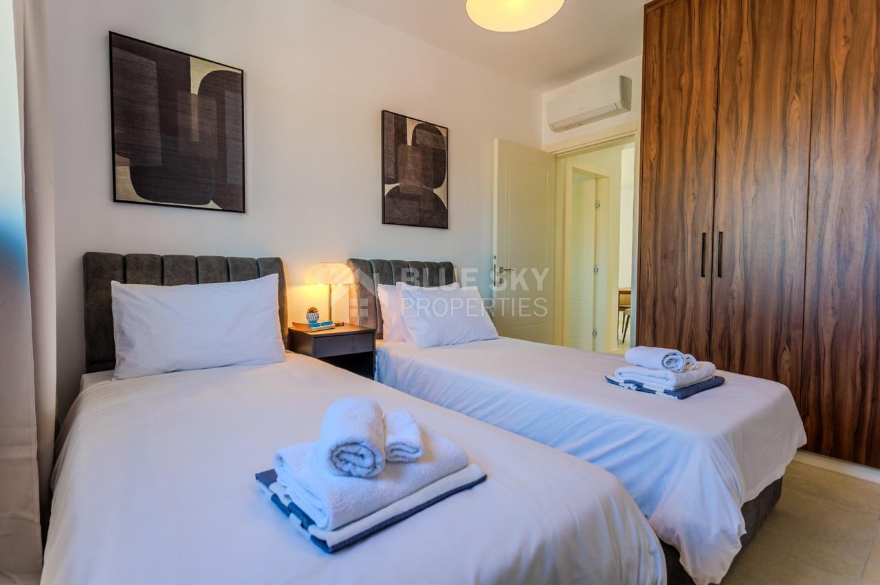 Answer: Yes, the apartment is fully furnished with contemporary, stylish furniture and equipped with all essential appliances for modern living.