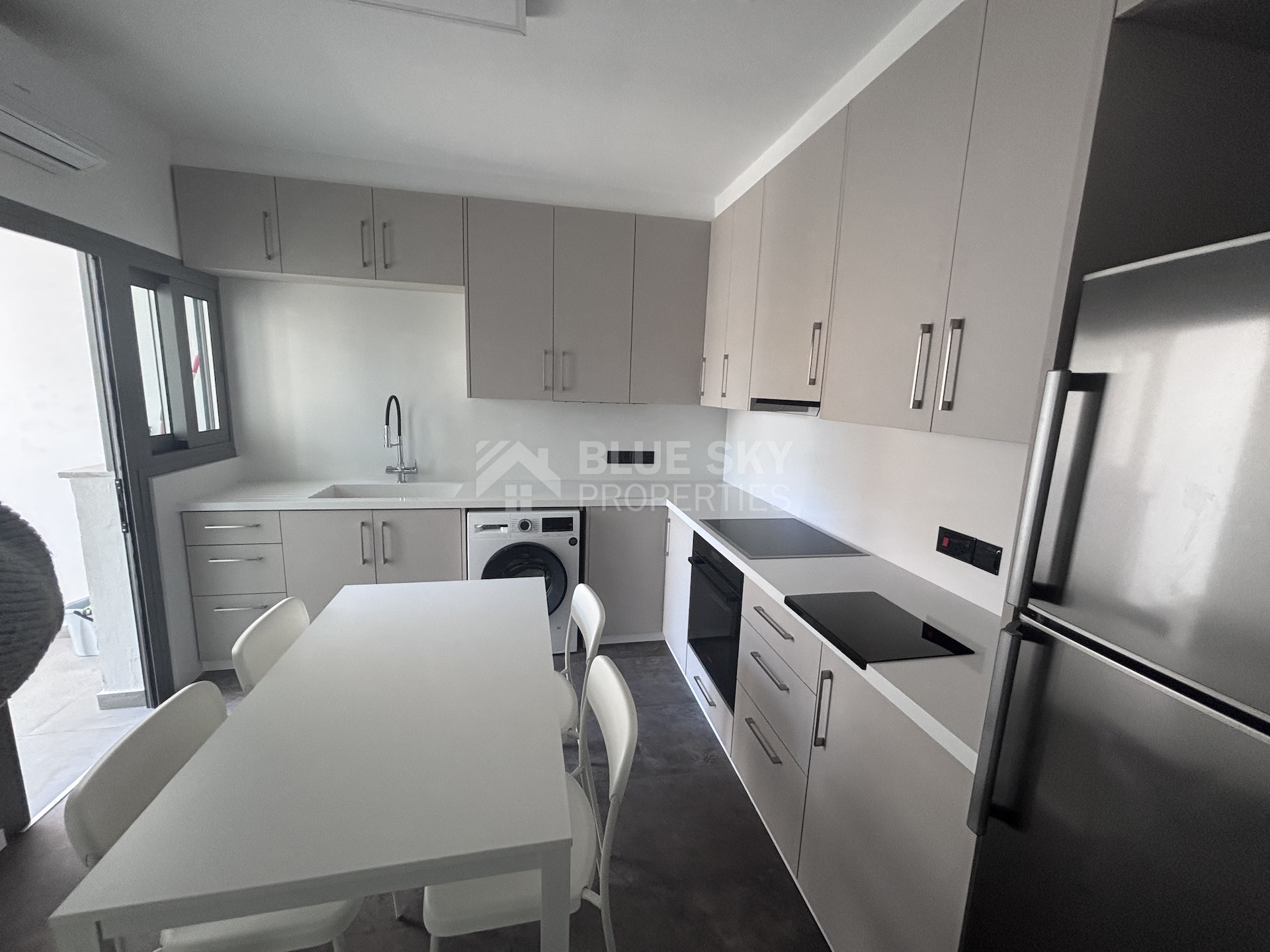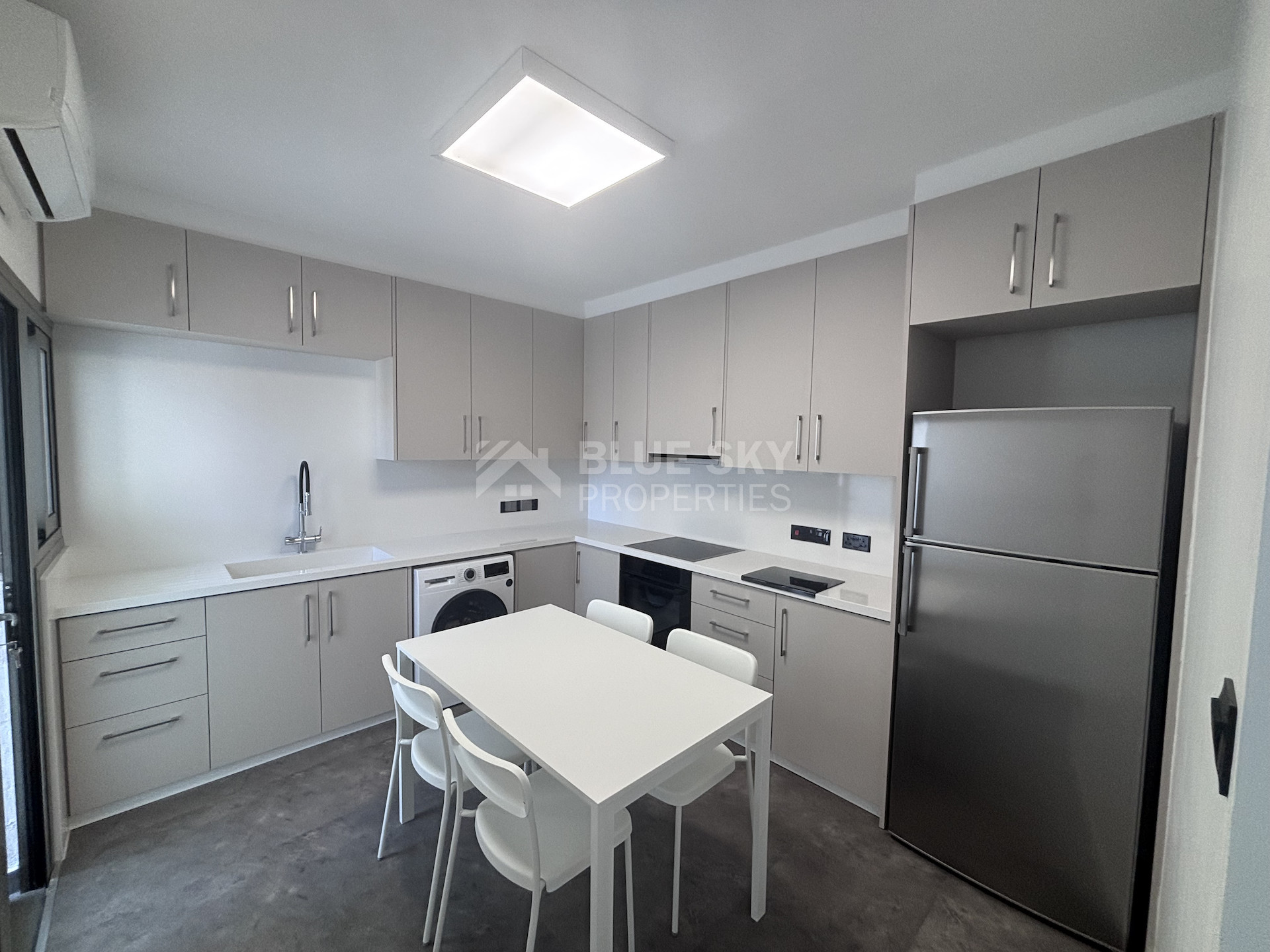 A beautifully renovated 2-bedroom apartment is now available for long-term rent in the prime area of Agia Zoni. This bright and spacious property offers a total covered area of 95 sqm, including a 10 sqm balcony, and is designed to provide both comfort and modern living.