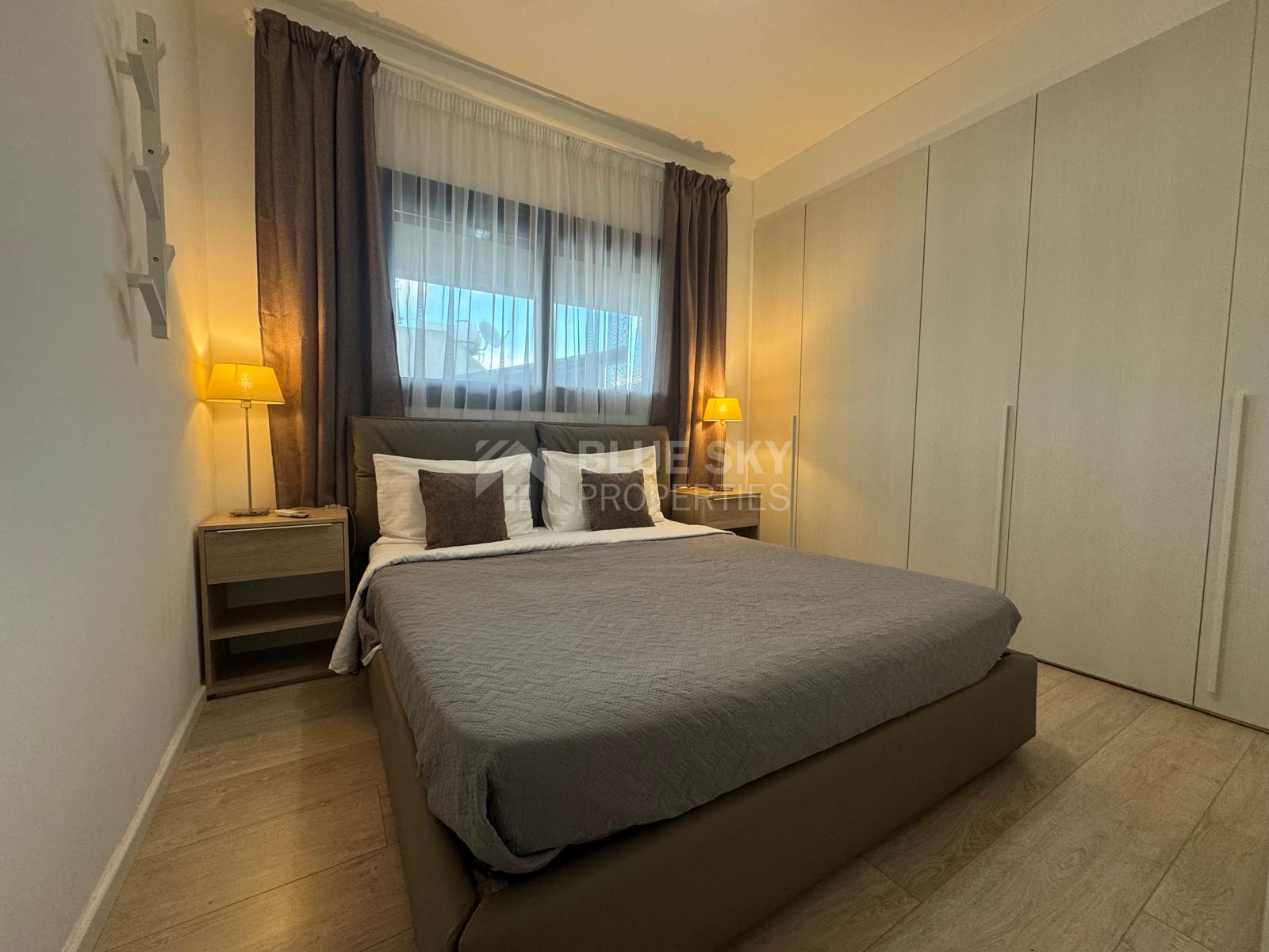 This beautifully designed two-bedroom apartment is located in a quiet residential area just north of Makarios Avenue in Limassol. Set within an award-winning boutique-style residence, this property offers a perfect blend of modern elegance, comfort, and convenience.