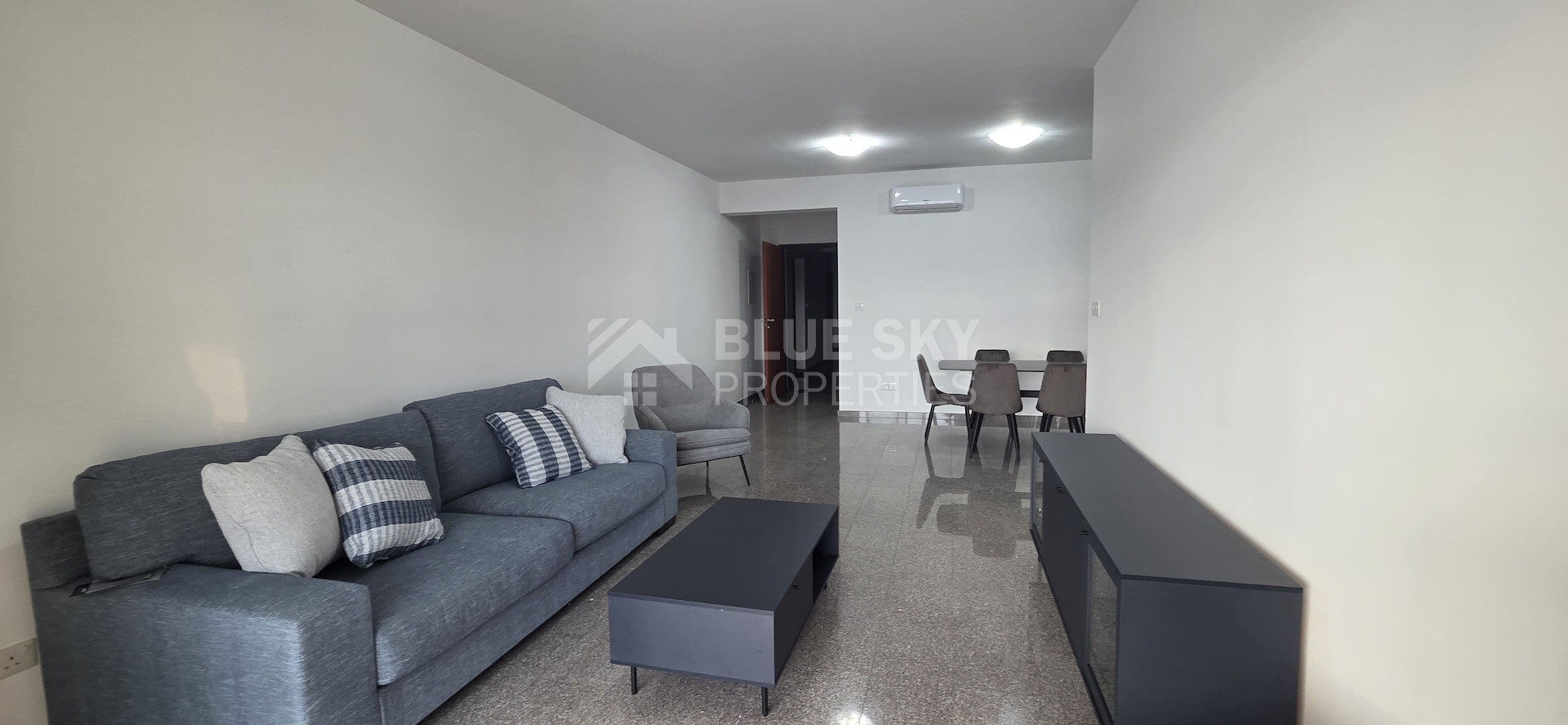 A recently renovated three-bedroom apartment located in a quiet residential area of Mesa Geitonia, offering easy access to Spyrou Kyrianou Avenue, the highway, and all main road arteries.