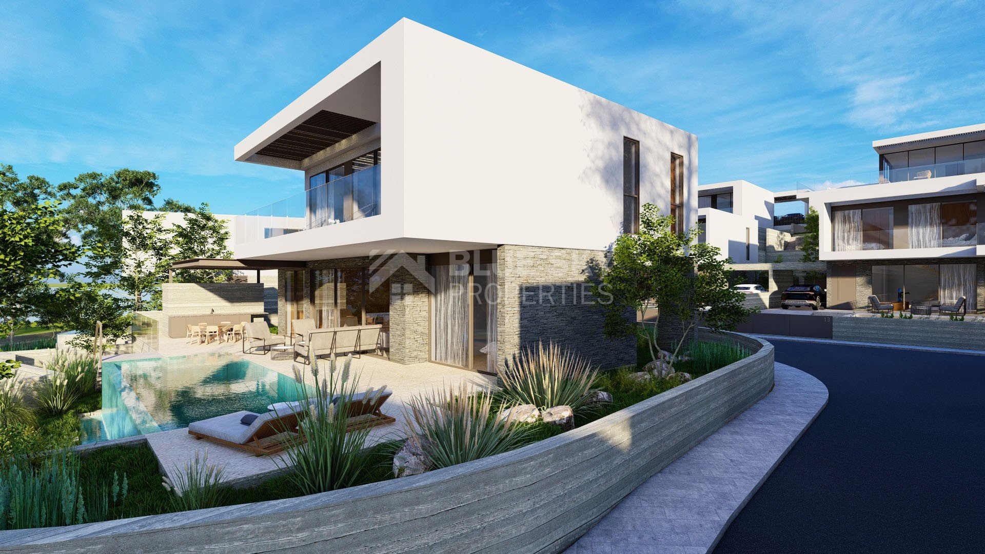 A boutique development in Geroskipou Hills of 15 Luxury Villas, with unobstructed sea views, all completely detached and with luxury specifications. Each contemporary villa has a plot size from 335m2 to 718m2, and have spacious strategically designed internal covered areas, with open plan living areas, high ceilings and welcoming plenty of natural light from the floor to ceiling sliding doors and windows.