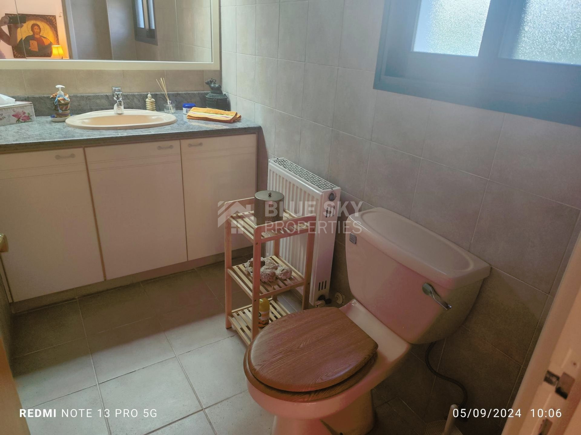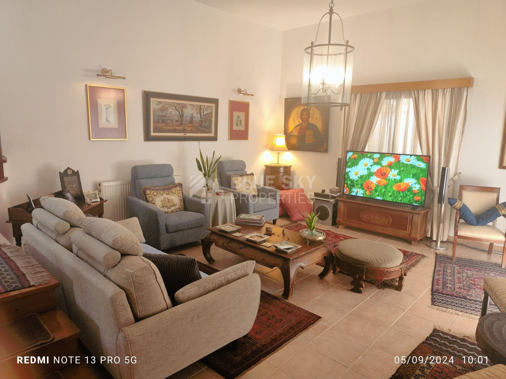 Outside there is a nice big garden with flowers, with automatic watering system , nice courtyard to enjoy your coffee , barbeque and one covered and two uncovered parking spaces.