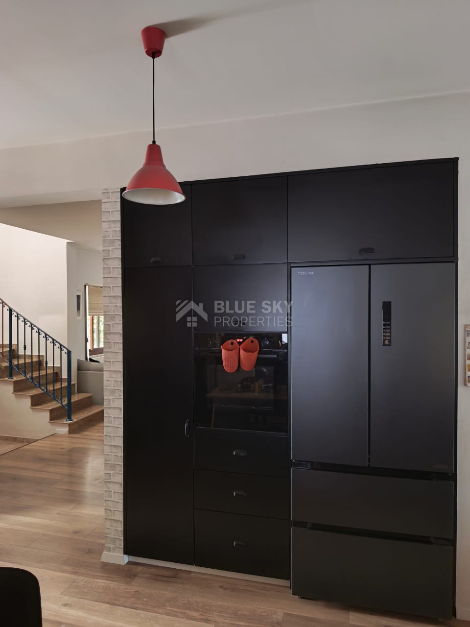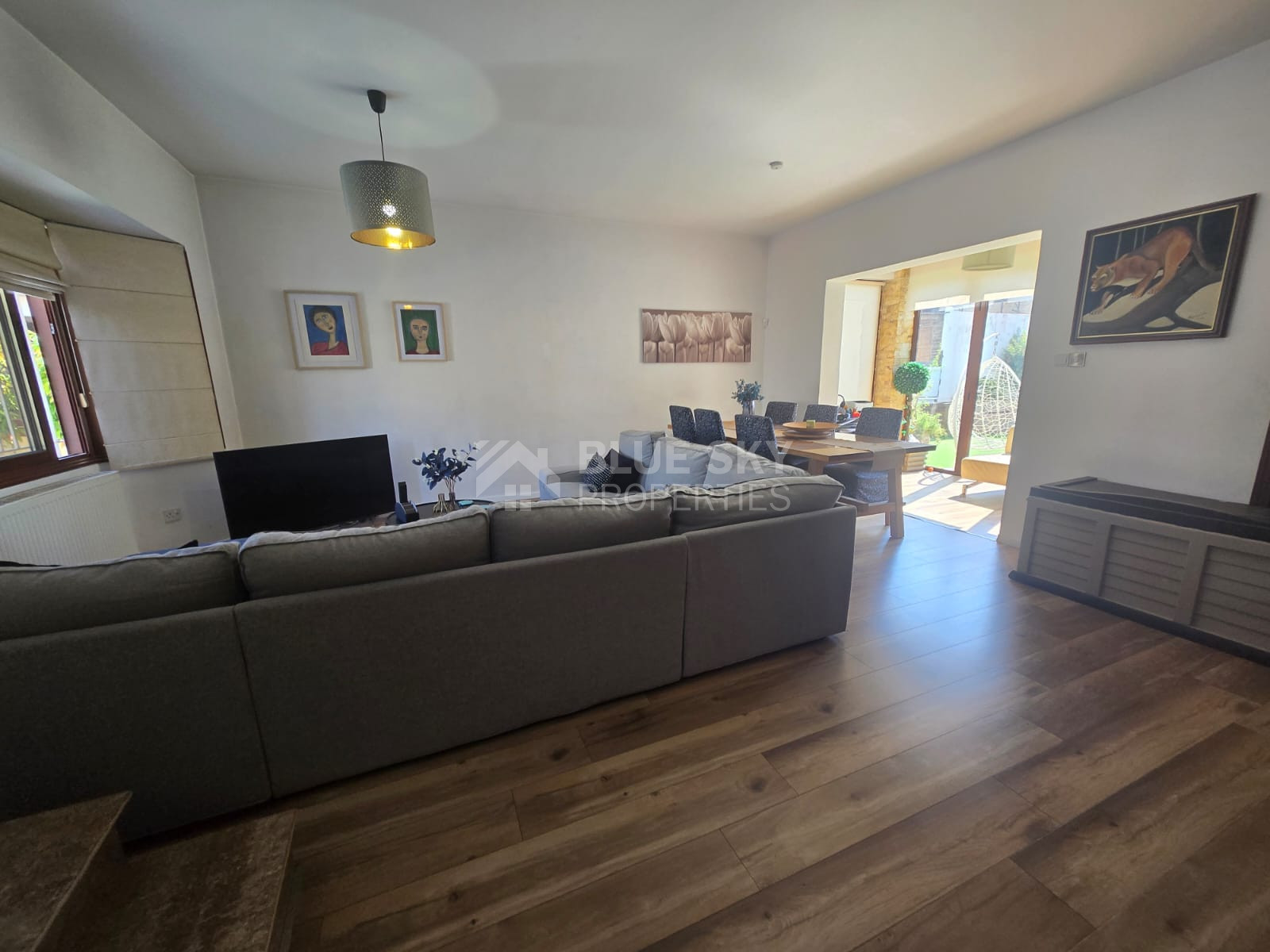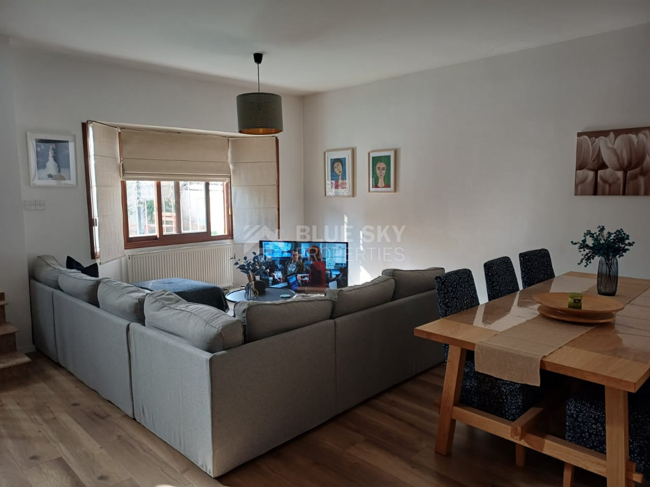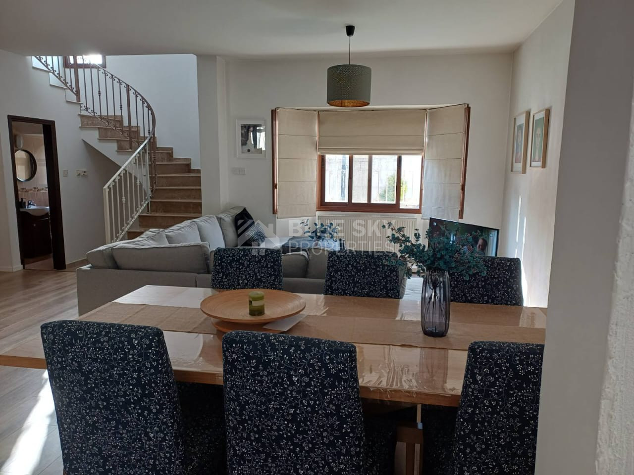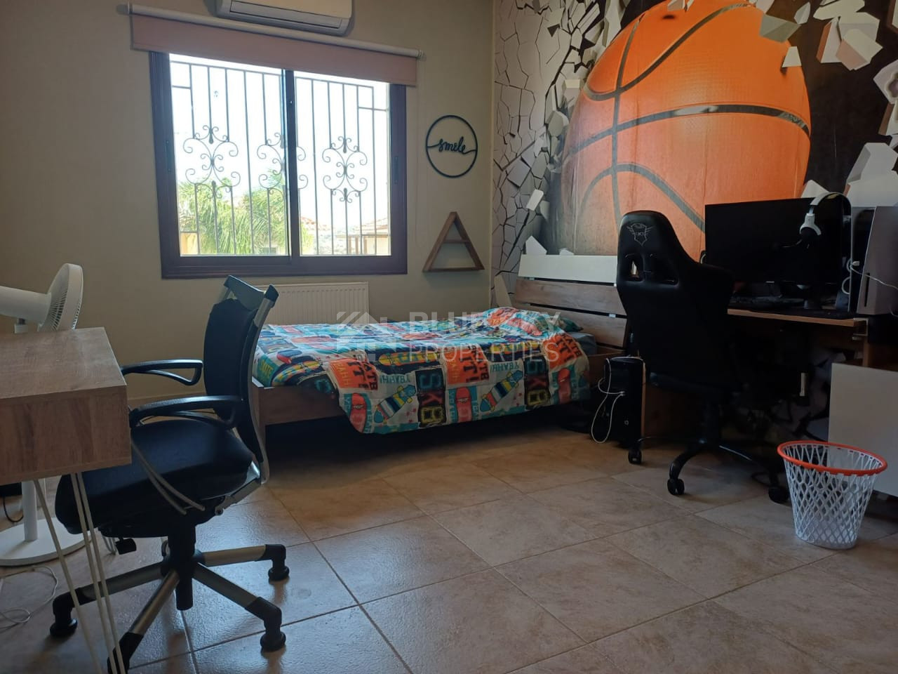 A spacious three-bedroom detached house is available in the peaceful residential area of Moni. Set on beautifully maintained grounds, the property offers a welcoming and well-thought-out layout that includes a separate kitchen, dining, and sitting area, as well as a formal living and dining room, a kitchenette, and a small office space. All three bedrooms are located on the upper level, with the master bedroom featuring an en-suite bathroom and a walk-in wardrobe, while a large family bathroom serves the other two rooms. The home is fully air-conditioned, equipped with diesel wall heaters, and benefits from photovoltaic panels for energy efficiency. Outside, a private swimming pool and lovely outdoor entertaining area make this home perfect for relaxed living. Ideal for families, young professionals working remotely, or anyone looking for a quiet lifestyle in a village setting.
