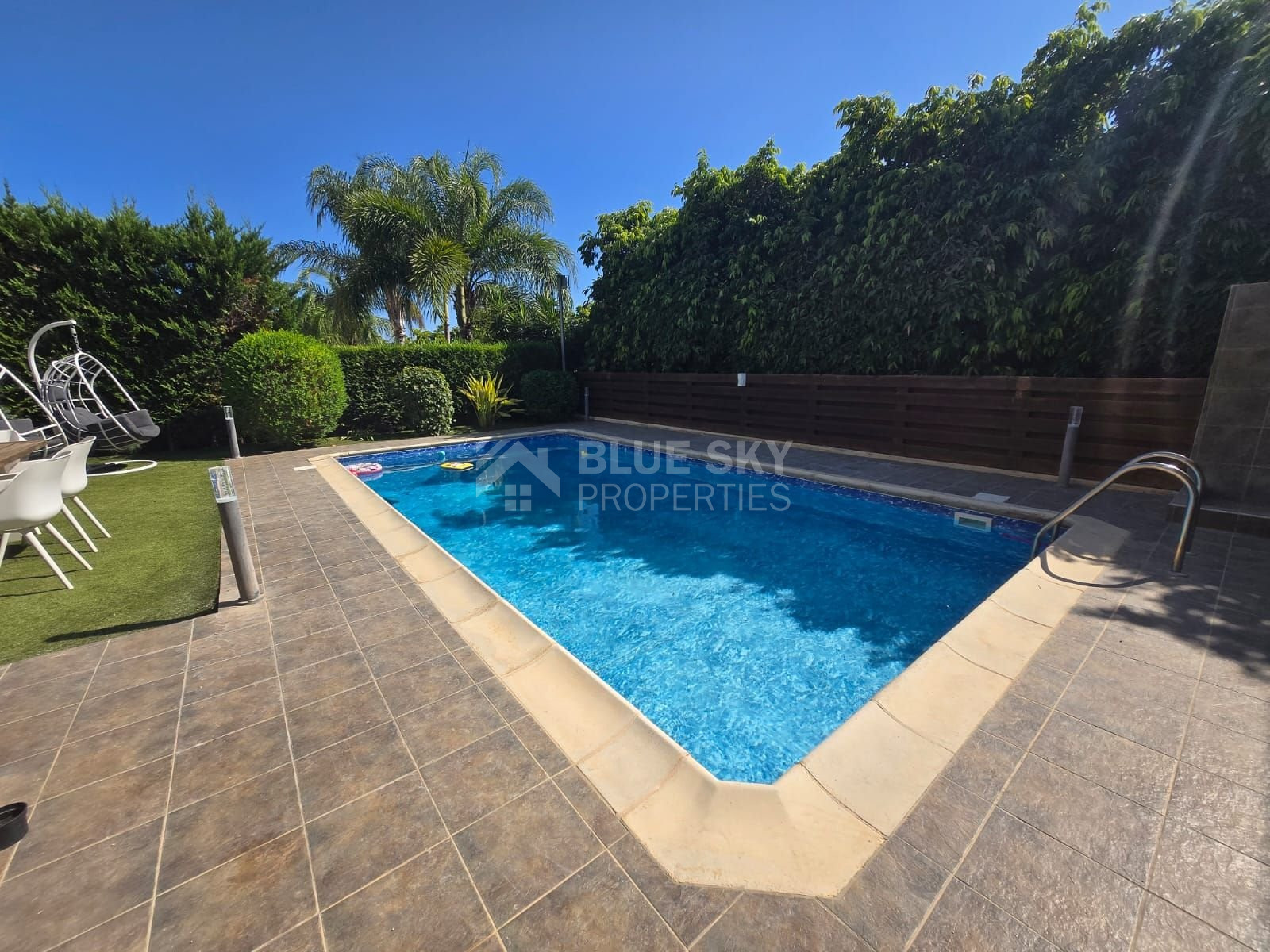 Outdoor living: Beautifully landscaped mature gardens, private swimming pool, and expansive terrace perfect for entertaining or relaxing