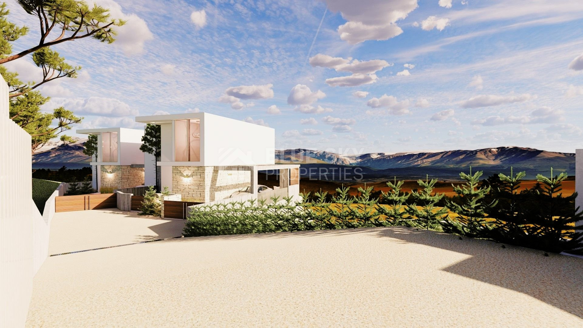 Discover your perfect home in the charming village of Tsada with these two stunning 3-bedroom villas. Offering 130 square meters of elegant living space, this villa includes a guest WC, an ensuite master bedroom, and an additional bathroom. The property features a 25-square-meter covered veranda for al fresco dining, a refreshing swimming pool, and ample parking on a generous 631-square-meter plot. Just 3 minutes from the luxurious Minthis Hills golf resort and the quaint Tsada village, and only 15 minutes from Paphos city, this villa provides the ideal blend of tranquility and accessibility for those seeking a serene retreat with easy access to urban conveniences.