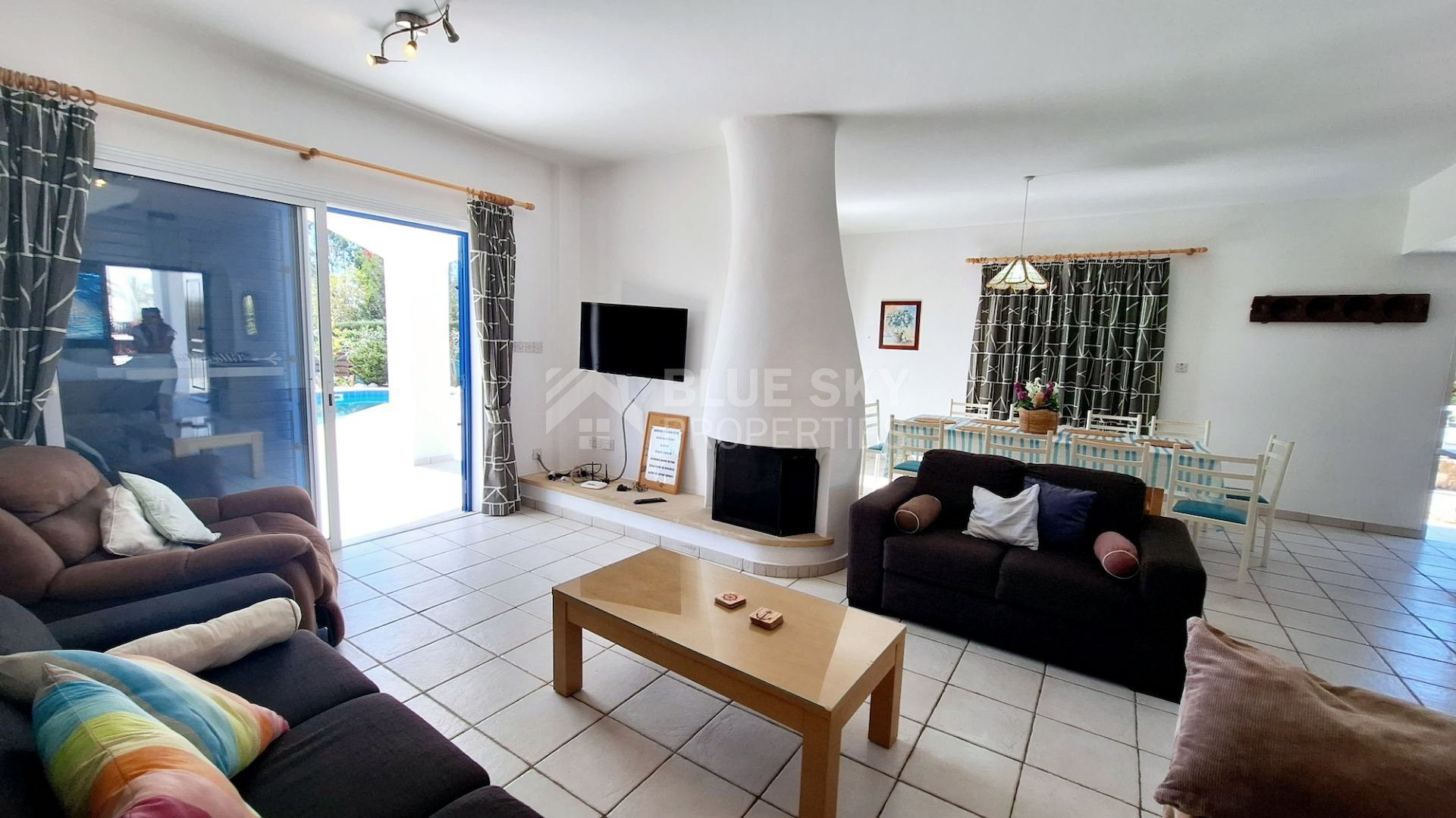 Welcome to this stunning detached villa located in the picturesque area of Chlorakas. This confortable home, built in 2004 and renovated in 2025, offers a spacious internal area of 255 m2. With open space living room/dining room/ kitchen, five bedrooms, three bathrooms ( one en-suite) , one guest toilet and on three levels, this property is perfect for families seeking comfort and style.