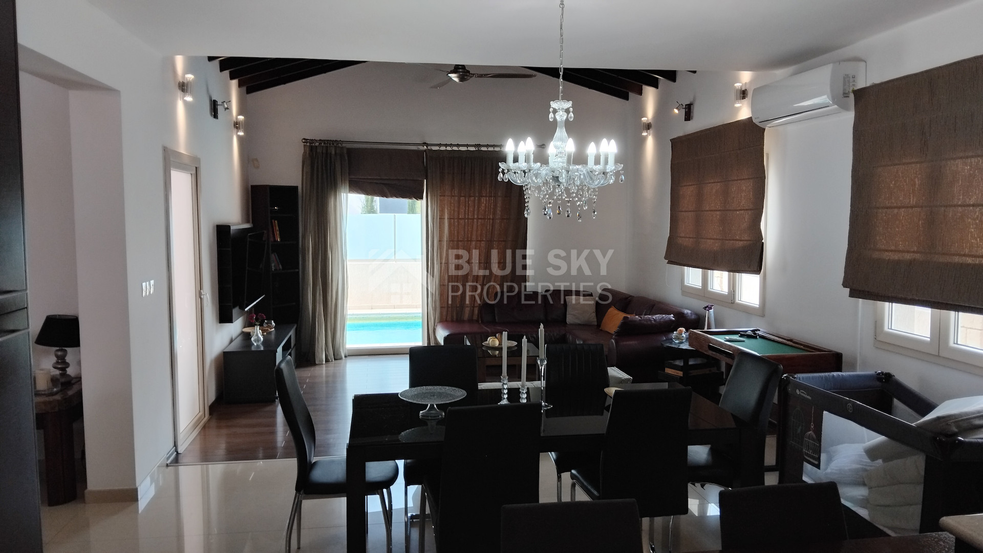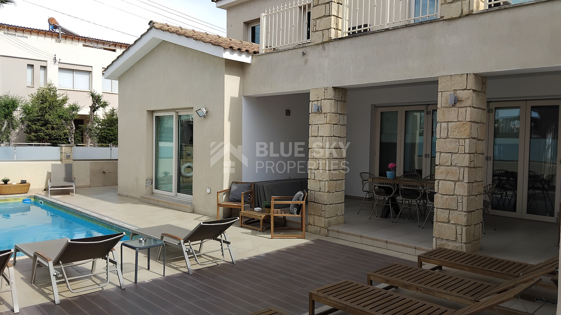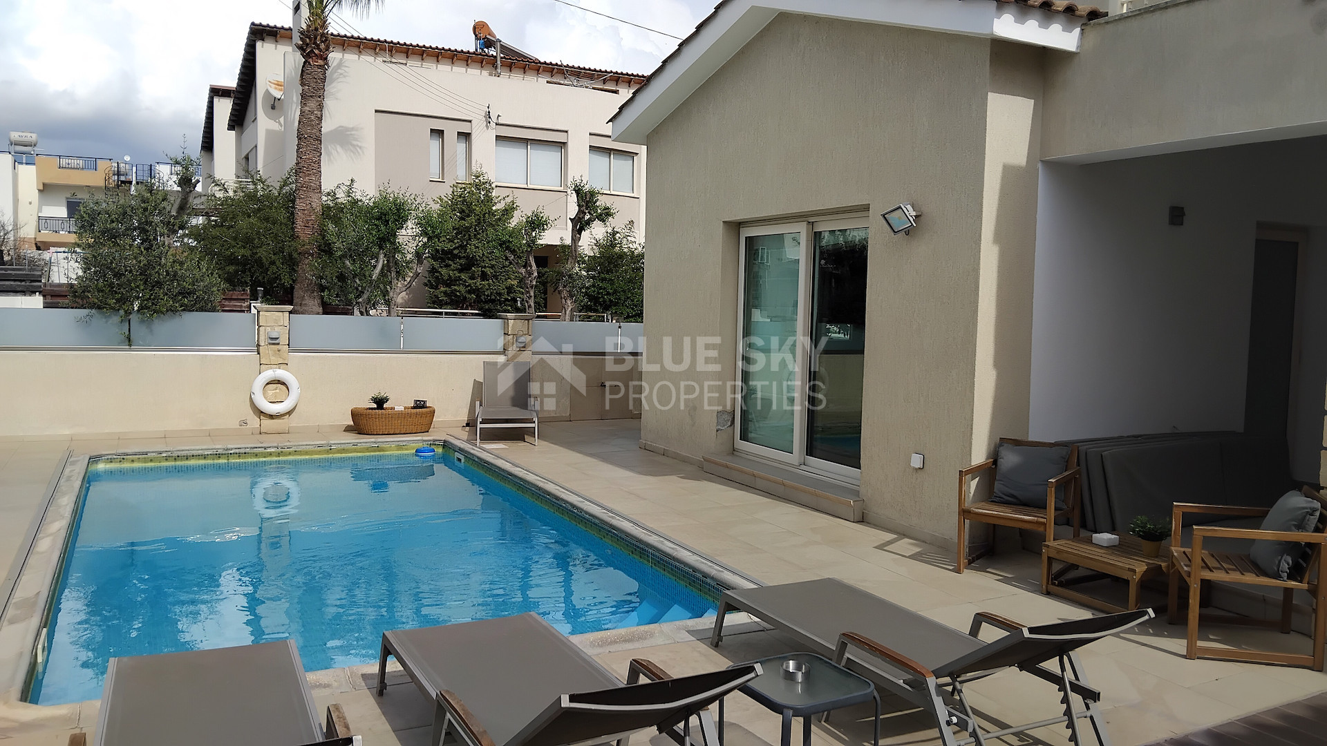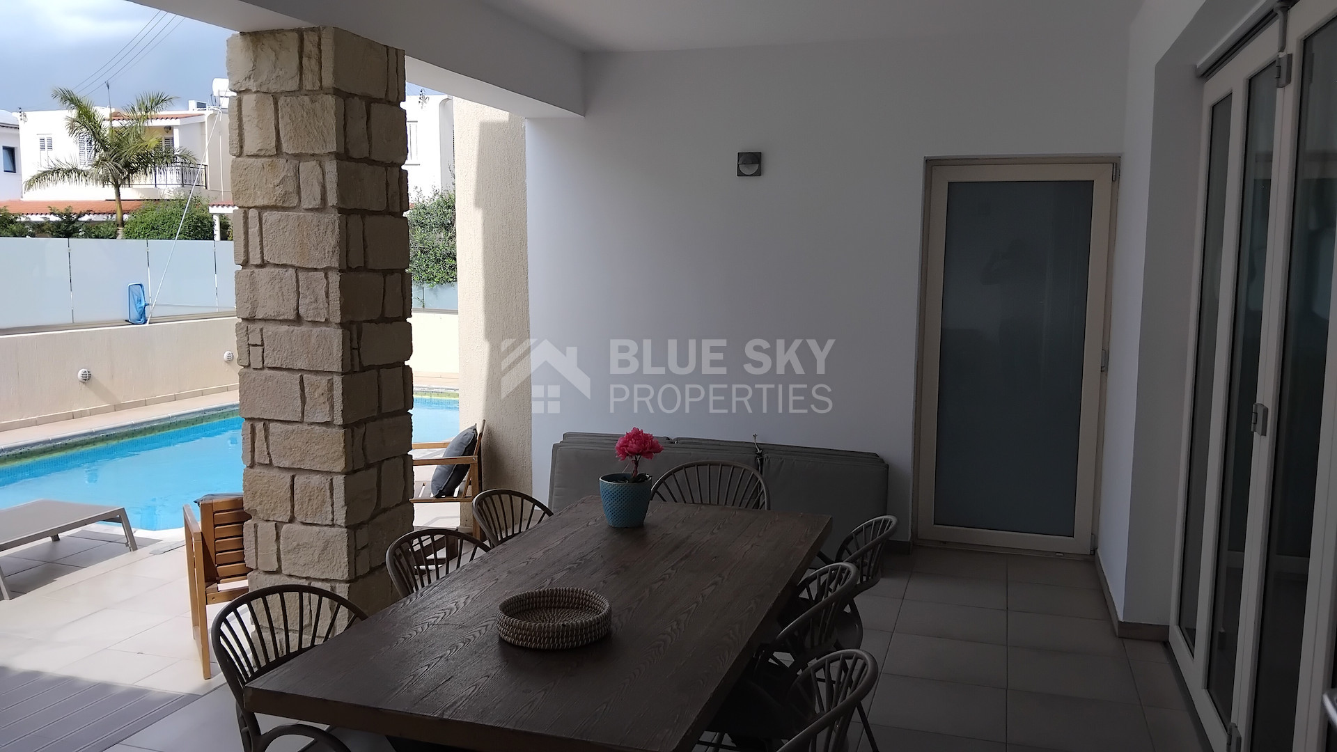 Set on a large plot, the property boasts a private swimming pool surrounded by a generous garden, ideal for relaxing or entertaining guests. All bedrooms are light-filled with built-in wardrobes, and the modern bathrooms are designed for convenience. The kitchen is fully equipped, making meal preparation easy for any occasion.