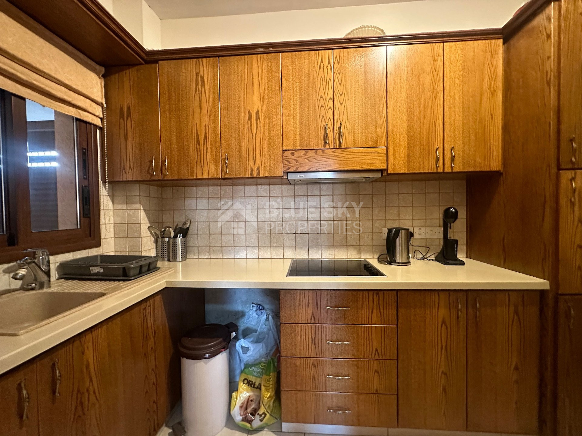 Located in a quiet residential area of Agios Athanasios, this spacious 323m² home sits on an 806m² plot, offering easy access to schools and all amenities. The property features large private gardens, a covered pergola with built-in BBQ, and an external maid’s quarters.
