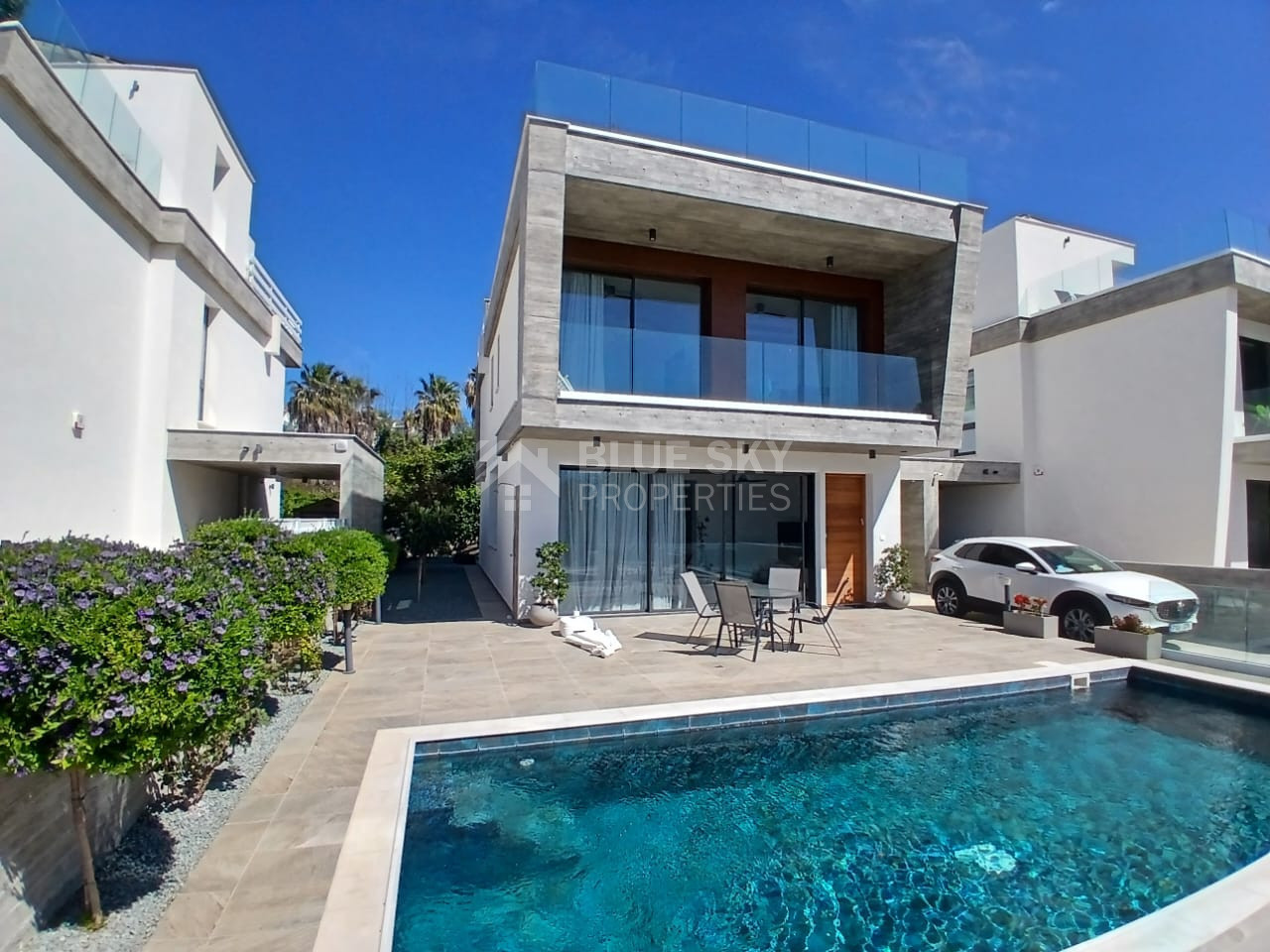 Experience comfort all year round with a central air conditioning system and underfloor heating. Large windows bring in plenty of natural light and offer beautiful sea views from several rooms. Step outside to your private swimming pool, perfect for relaxing or hosting gatherings with family and friends.
