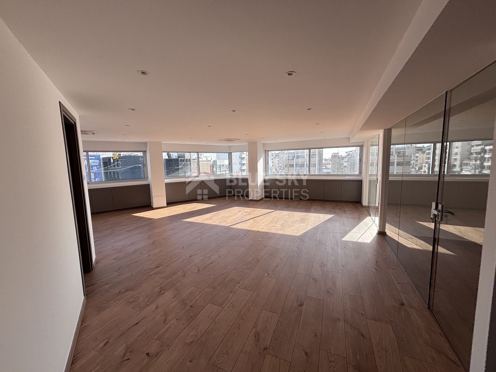 Available for rent, this well-maintained office offers 138 sqm of internal space on the third floor of a modern seven-story building with elevator access. The layout is practical and spacious, allowing flexibility for a range of business needs. Large windows ensure plenty of natural light throughout the workspace.