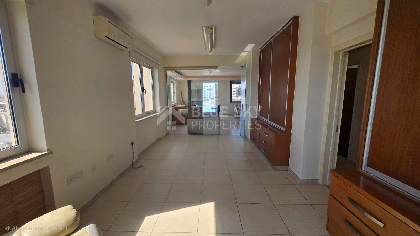 For rent: A unique 4th floor, full-floor office space, built in 2010, just 20m from Pafou Avenue in the heart of the city centre. With 128m² of covered areas plus 31m² of verandas (total nearly 160m²), this bright and spacious property enjoys stunning panoramic city and sea views from every room.