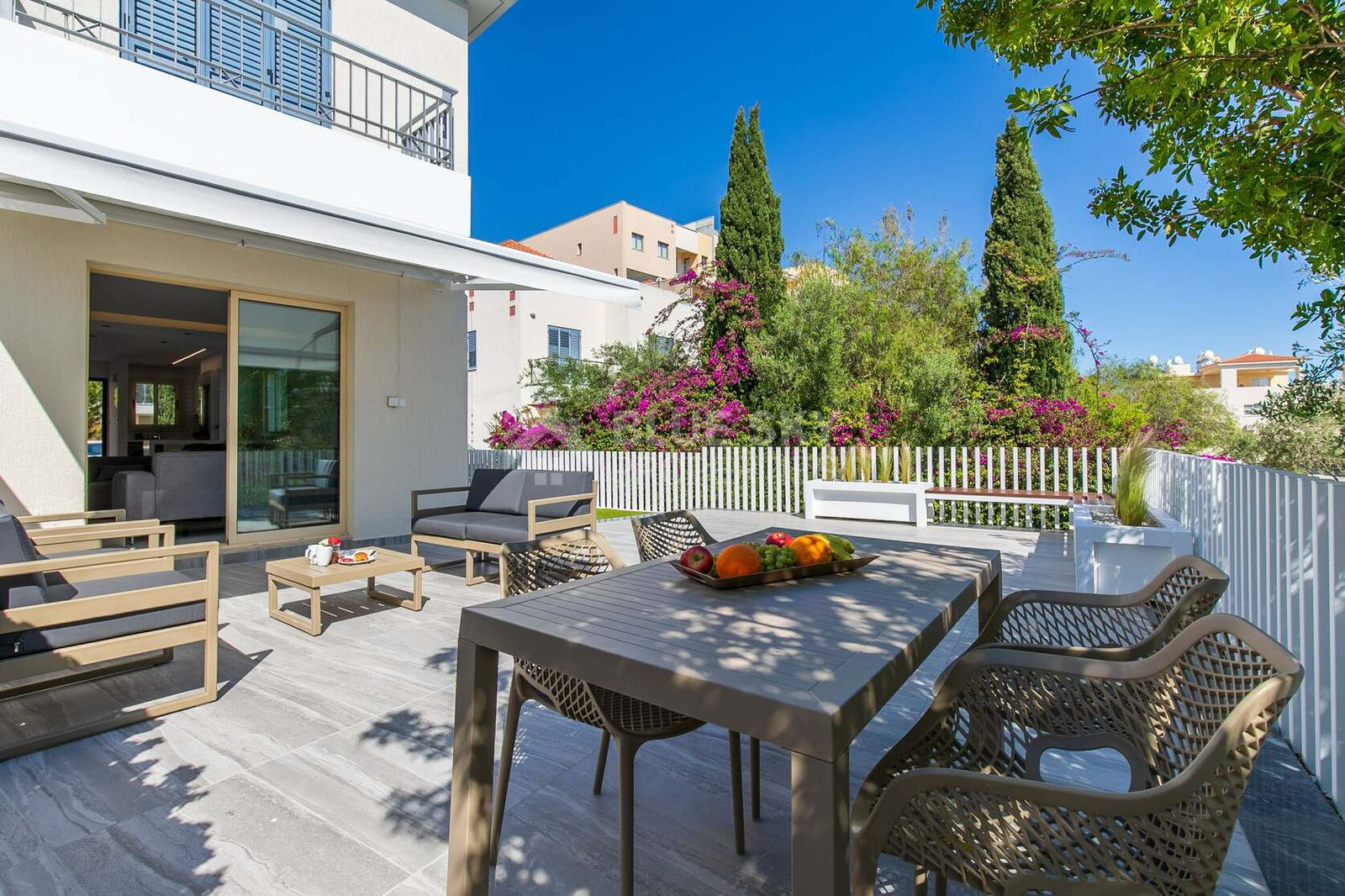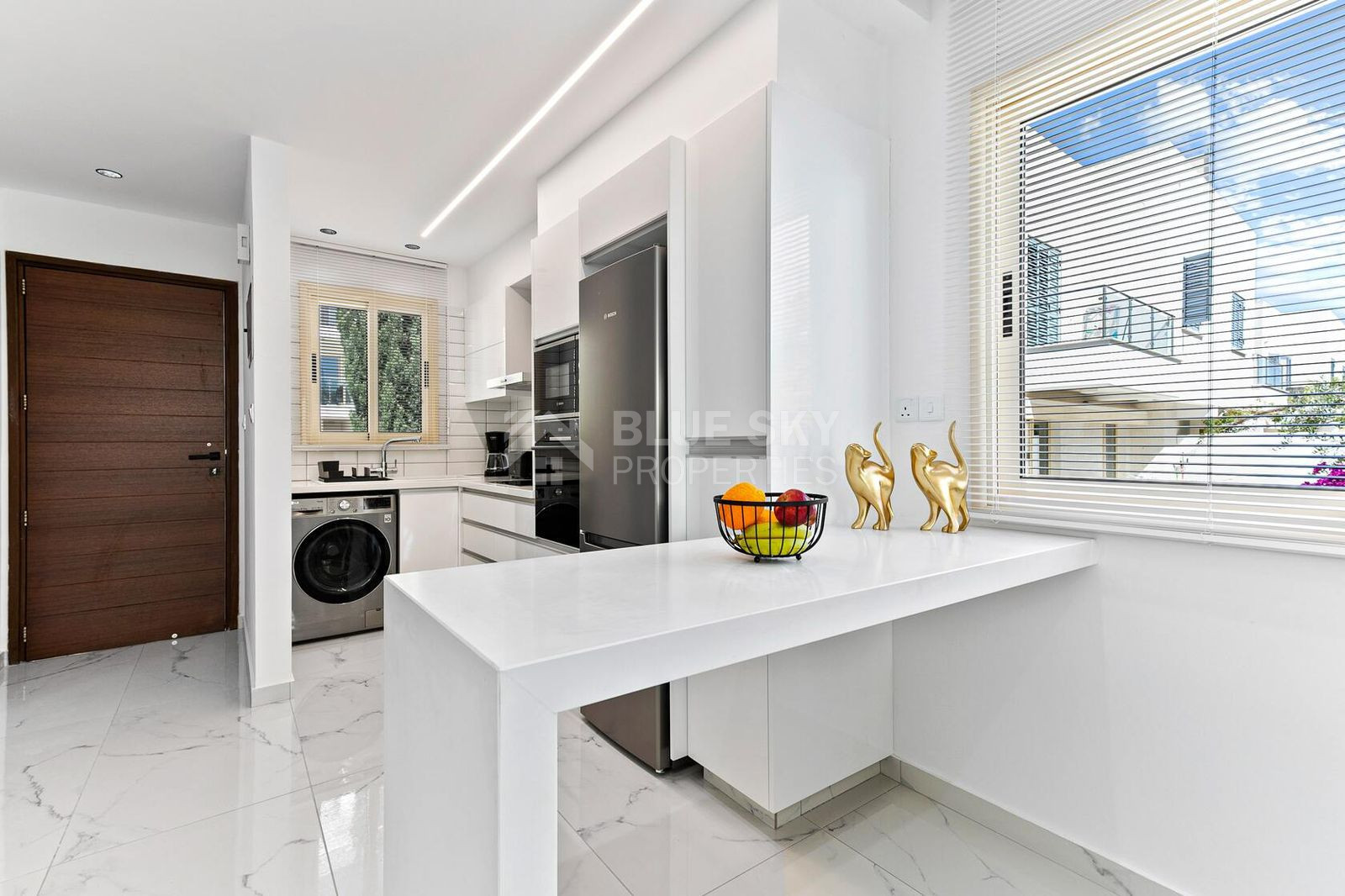 Modern luxury corner townhouse located in the prestigious Elysia Park complex in Universal, Paphos. Fully renovated and move-in ready, this stylish 2-bedroom home offers spacious indoor and outdoor living with a large veranda and private garden. Situated in a quiet area, the property combines comfort with resort-style amenities including pools, gym, wellness centre, and on-site conveniences—all just minutes from the beach and city hotspots.